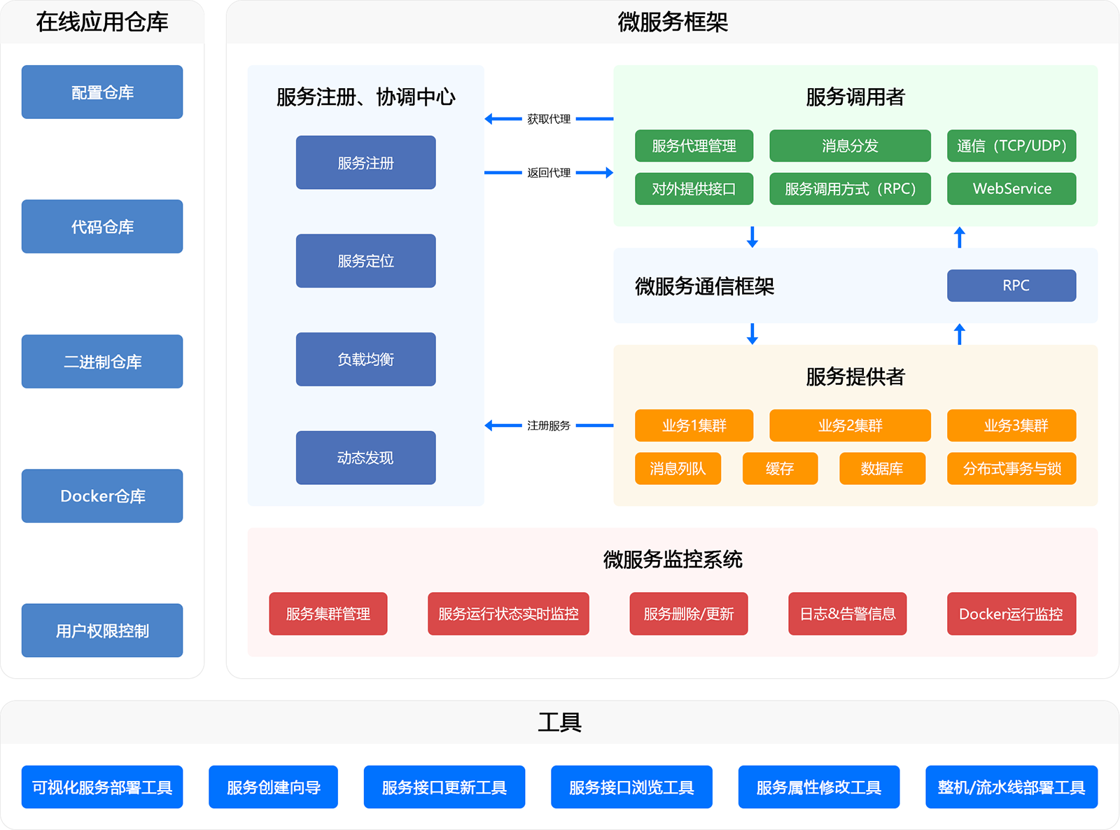 提供微服务运行支撑框架、高性能RPC通信框架、微服务监控系统